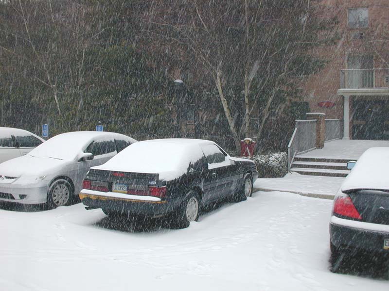 Normally, this would look good to contrast the different plants, but the snow is so thick in the air it subdues the effect.